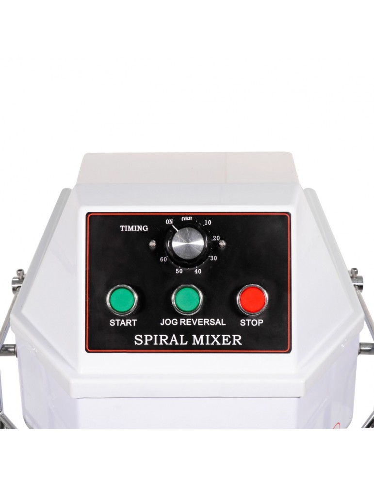 Caldero, gancho espiral, divisor de la masa, rejilla de seguridad y demás elementos que entran en contacto con la masa fabricados enteramente en acero inoxidable.