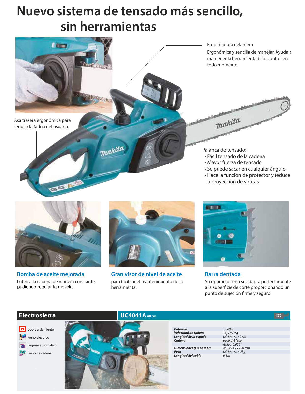 Sierra eléctrica + cadena 3/8pulg + espada MAKITA UC4041A