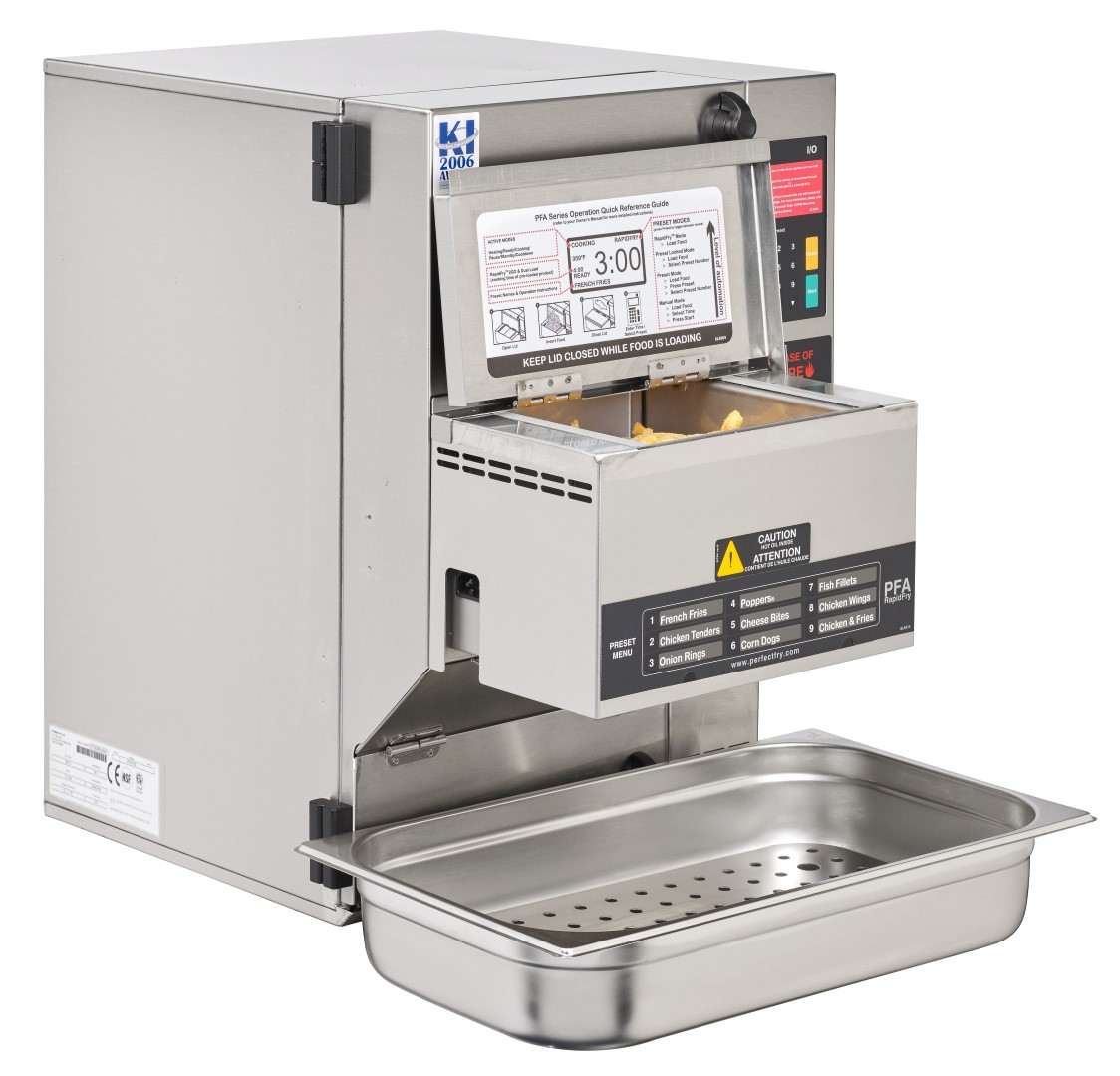 El Perfect Fry DSA5700 es una freidora sin ventilación totalmente automática que le permitirá a su empresa cocinar fácilmente alimentos calientes durante todo el día sin necesidad de extracción. ¡El sistema de filtración de aire incorporado significa que no hay necesidad de campanas costosas, ventiladores y no produce olores! Con la versión completamente automática, todo lo que necesita hacer es simplemente colocar los alimentos congelados en la bandeja superior, seleccionar el presente y presionar inicio y los alimentos cocinados a la perfección se dispensan desde la parte inferior. Finalmente, la lámpara calefactora integrada mantendrá sus alimentos calientes y listos para cuando quiera servir a sus clientes.