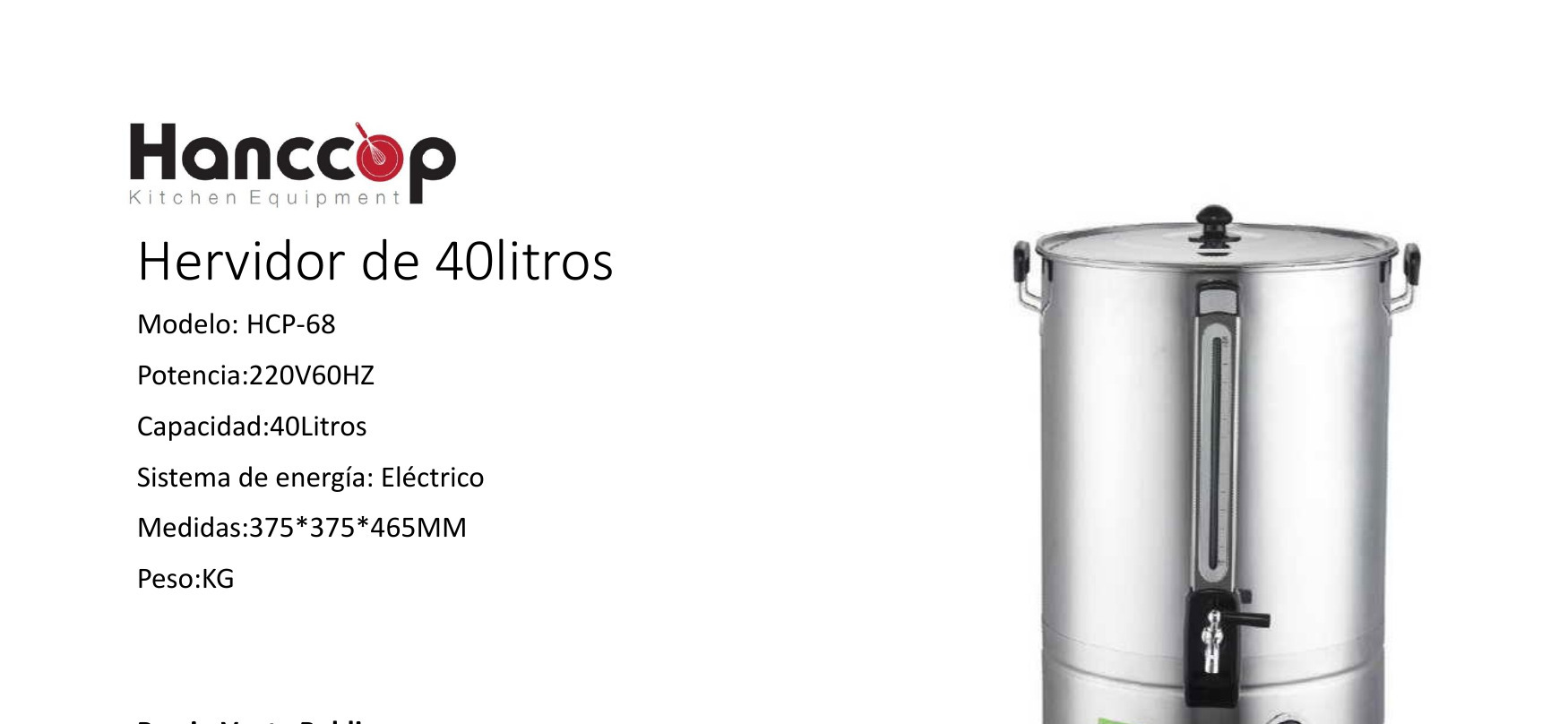 HERVIDOR DE AGUA MARCA: HANCCOP MODELO: HCP-68