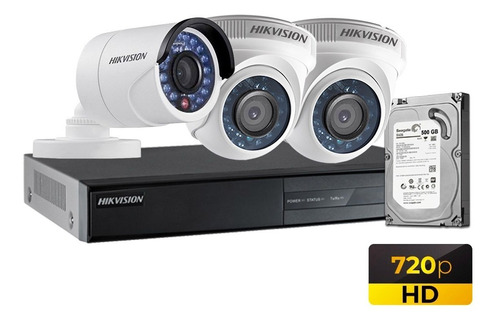 Kit de 03 cámaras de seguridad HD HIKVISION con disco duro de 500GB, Cable y accesorios completos