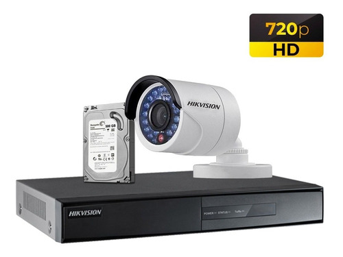 Kit de 01 cámara de seguridad HD HIKVISION con disco duro de 500GB, Cable y accesorios completos