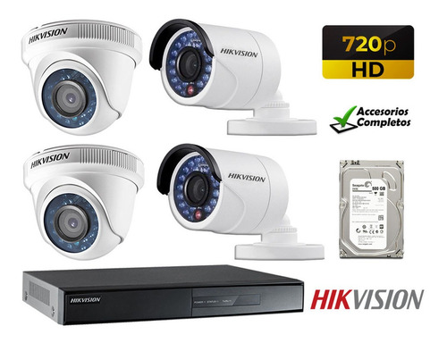Kit 4 Camaras De Seguridad Hd 720P Hikvision Disco Con Disco De 500GB y accesorios completos