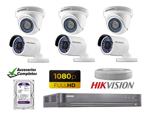 Kit 6 Camaras De Seguridad Full Hd 1080P Hikvision Con Disco De 2TB, Cable y accesorios completos
