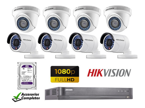 Kit 8 Camaras De Seguridad Full Hd 1080P Hikvision Con Disco De 2TB y accesorios completos