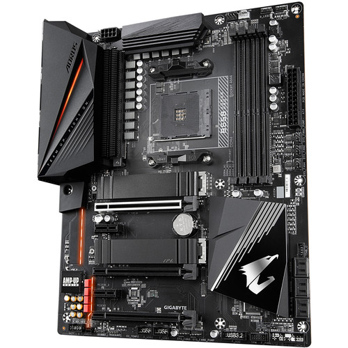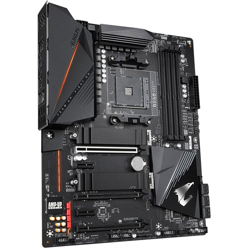 Placa base AMD B550 AORUS con VRM digital real de 12 + 2 fases, disipador de calor de matriz de aletas, Heatpipe de toque directo, PCIe dual 4.0 / 3.0 x4 M.2 con protectores térmicos, LAN de 2.5GbE, RGB FUSION 2.0, Q-Flash Plus