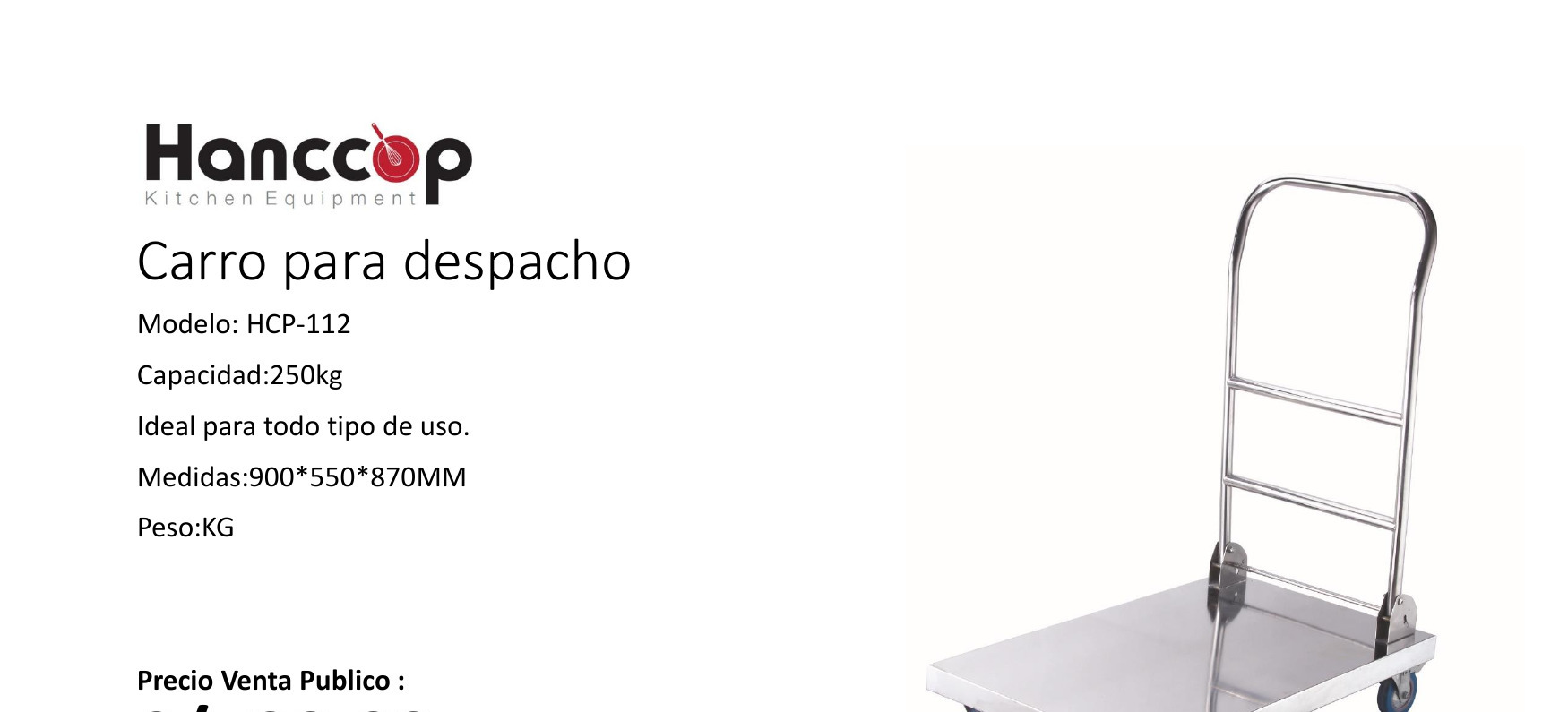 CARRO DE SERVICIO – > MARCA: HANCCOP -> MODELO: HCP-112 ; REALIZAMOS ENVIOS A TODO EL PERU HANCCOP ENTREGA INMEDIATA