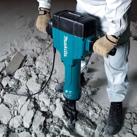 Martillo eléctrico marca Makita. Especialmente indicado para demoliciones en pilares de hormigón, cimientos y pavimentos. Diseño en forma de «T» que facilita la postura de trabajo y permite un manejo más sencillo de la herramienta.Con escobillas autodesconectantes, totalmente protegidas. Incluye Kit de mantenimiento.