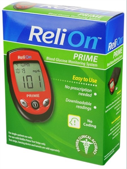 Descubra por qué ReliOn ™ Prime es el sistema de medidor de glucosa en sangre más vendido en Walmart. ReliOn ™ Prime es rápido, preciso y fácil de usar. Este medidor codificado automáticamente registra promedios de 14 y 30 días y se puede descargar. El ReliOn ™ Prime, con tiras reactivas con un precio de $ 9 por una botella de 50, ofrece una alternativa de bajo costo para personas con diabetes sin sacrificar la precisión.