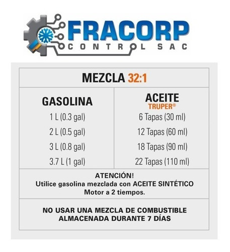-Mezcla de gasolina: 32:1