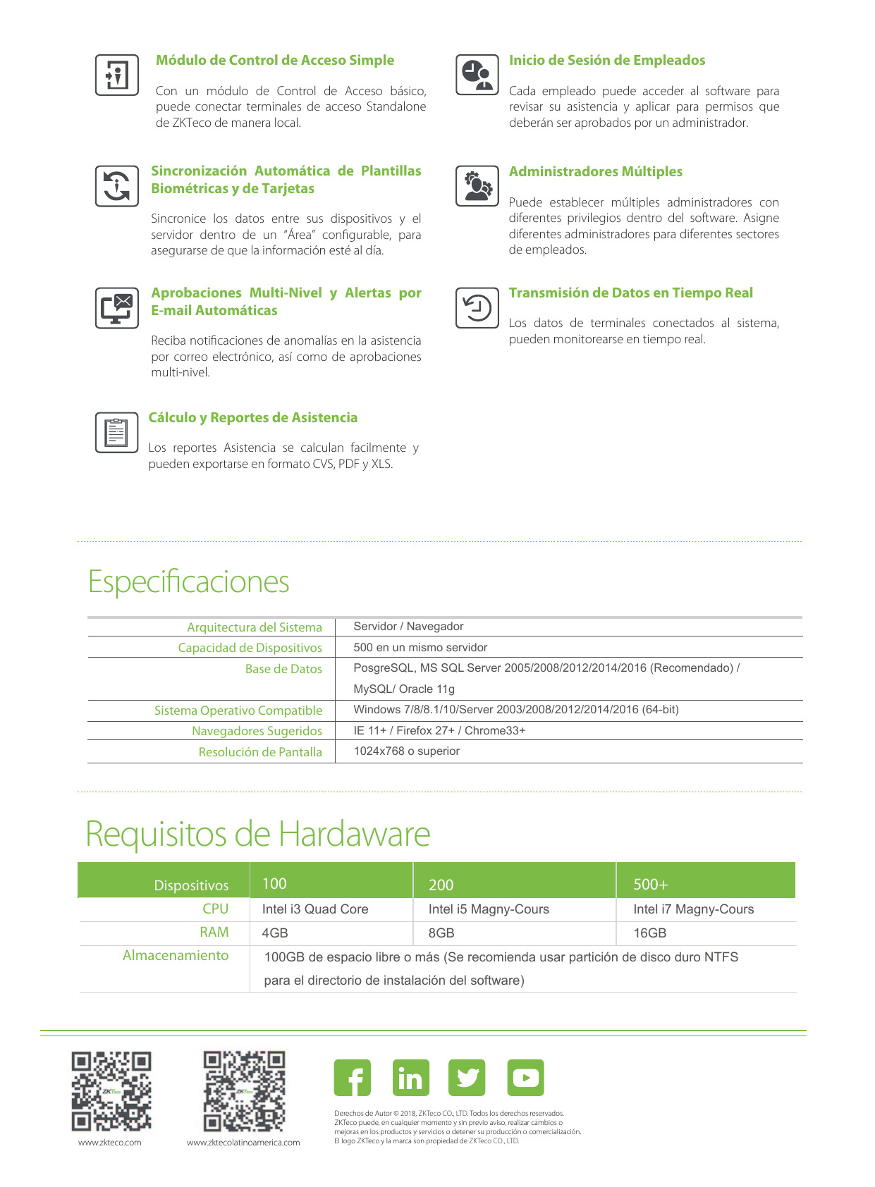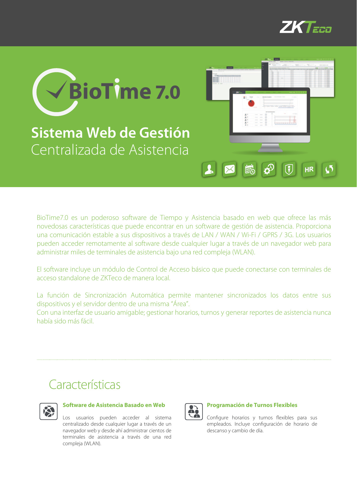 SOFTWARE DE CONTROL DE ASISTENCIA MARCA: ZKTECO MODELO: ZK-BS-TA-P75