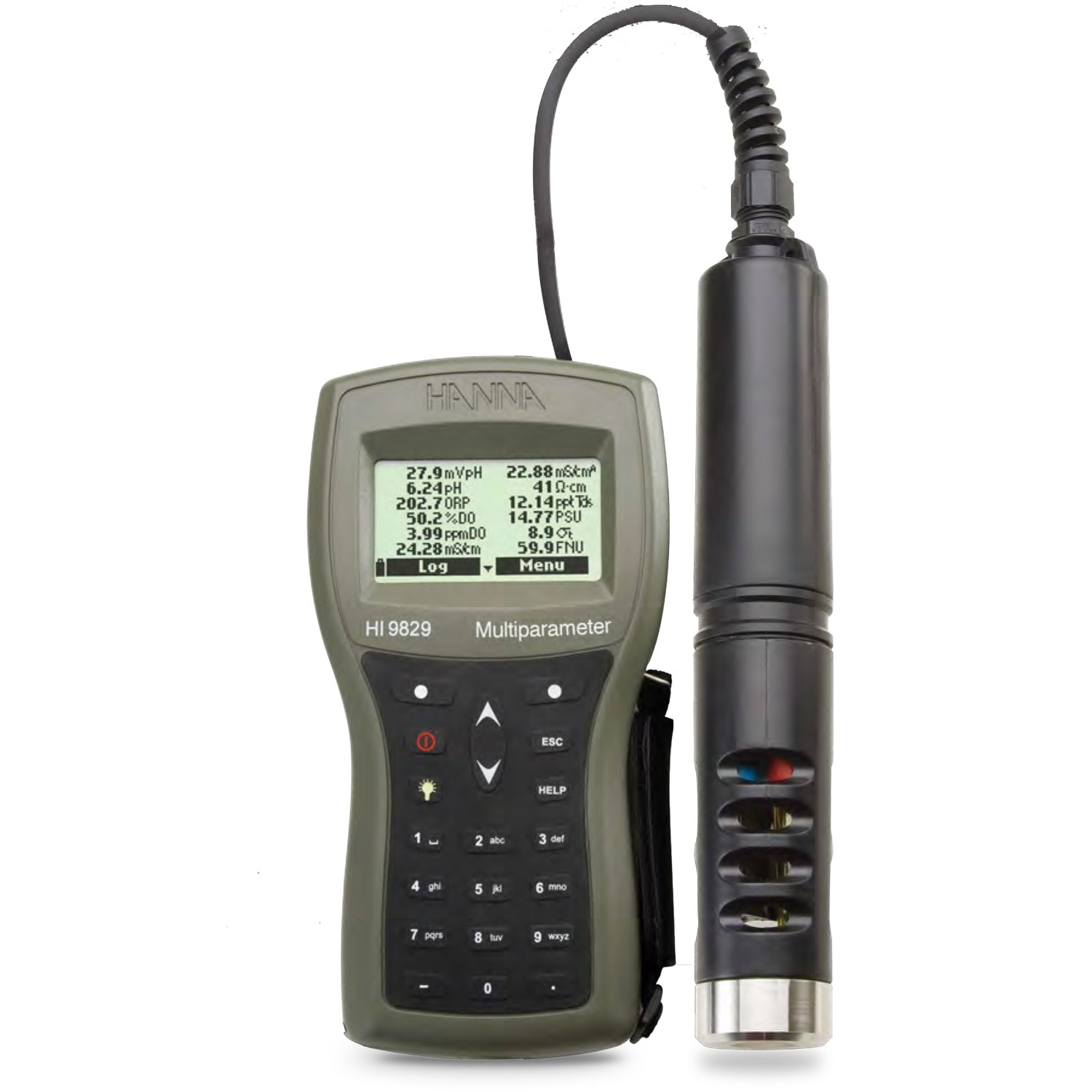 El HI7609829 (básico) y el HI7629829 (de registro) son sondas multiparamétricas para usar con el medidor portátil HI9829. Con qué sonda suministrar el equipo es decisión del propio usuario. Por defecto, el HI9829 y la sonda correspondiente se suministran con un sensor de pH / ORP, de conductividad y sensores de oxígeno disuelto. Cualquiera de las sondas se puede actualizar para medir la turbidez con un sensor de turbidez / conductividad.