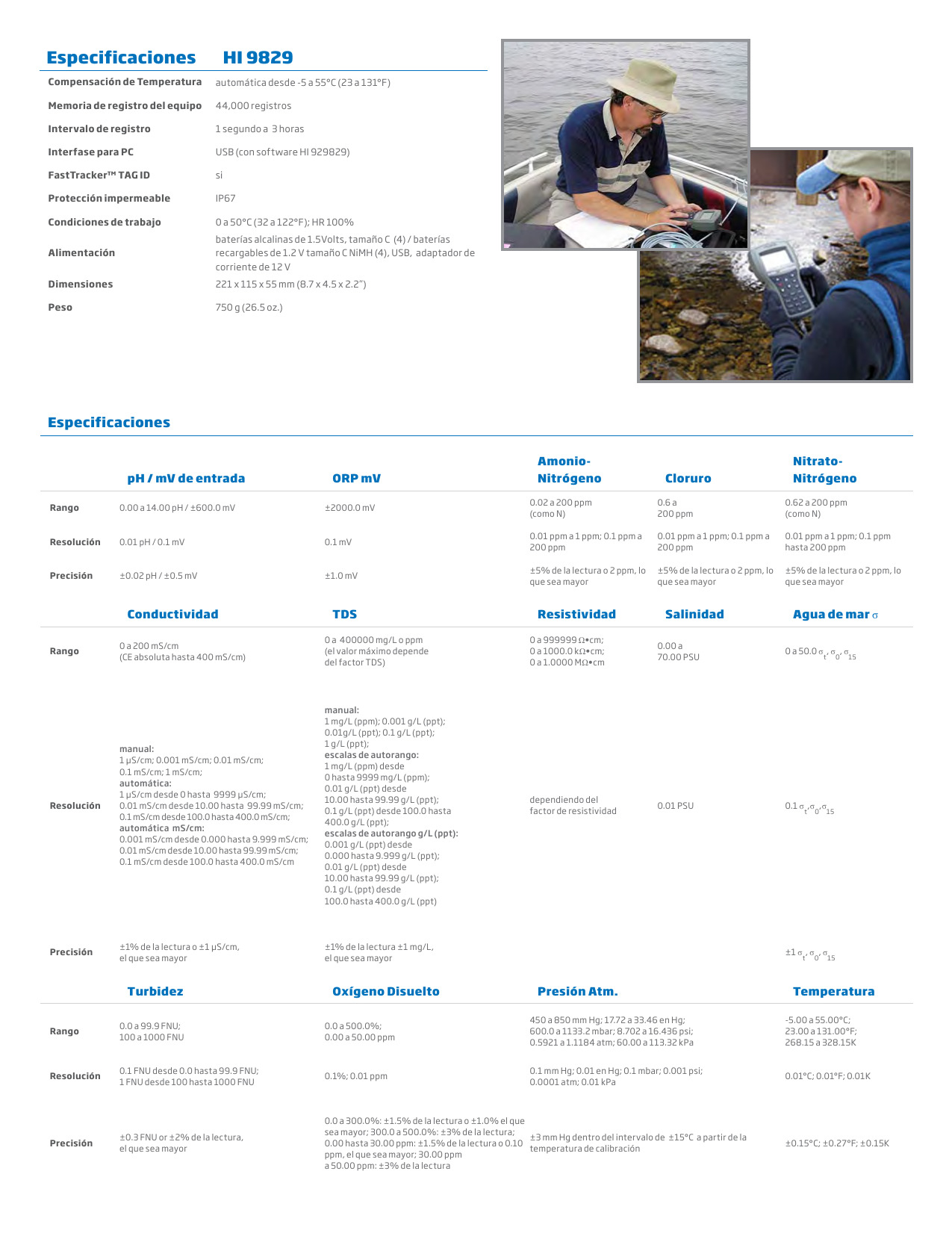 Medidor HI 9829-0 o HI 9829-1 (Modelo con GPS)