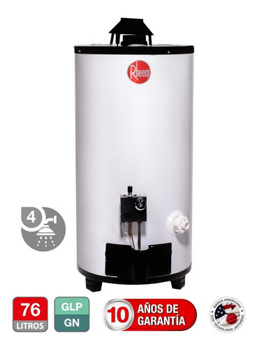 – Tiple sistema de seguridad (Apagado automático, en caso de falta de flama, Sistema de corte por sobrecalentamiento, y válvula de seguridad de sobre presión). – Tanque porcenalizado con fórmula patentada Rheemglas protege el tanque contra la corrosión que produce el agua.