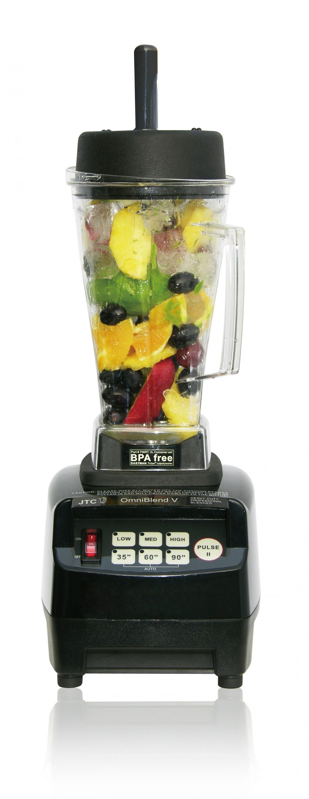 JTC Omni Blend V TM800 produce jugos y batidos saludables y ricos en nutrición para la calidad de los restaurantes. OmniBlend hace sopa caliente en minutos: el motor súper potente y las cuchillas de alta velocidad calientan los ingredientes frescos hasta el punto de ebullición mediante fricción. El conjunto de 6 cuchillas de OmniBlend machaca y corta la fruta congelada para crear una superficie más grande y fría que se vuelve a congelar en una delicia congelada, suave y deliciosa. OmniBlend amasa la masa de pan casero para crear pan fresco y crujiente utilizando solo los ingredientes que desee. OmniBlend puede moler granos de café o moler granos en harina.