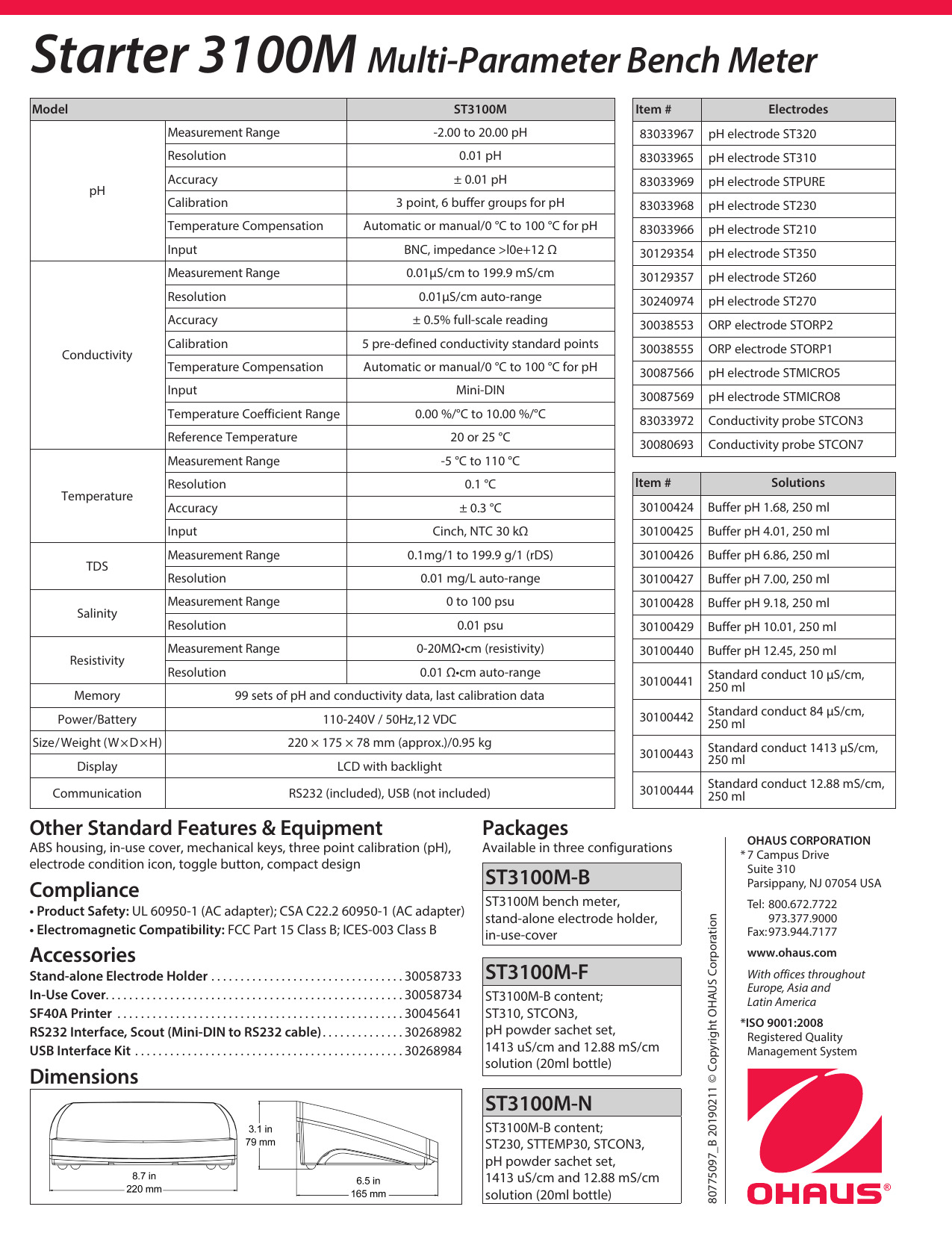 Medidor de Mesa Multiparamétrico STARTER OHAUS ST3100M-F