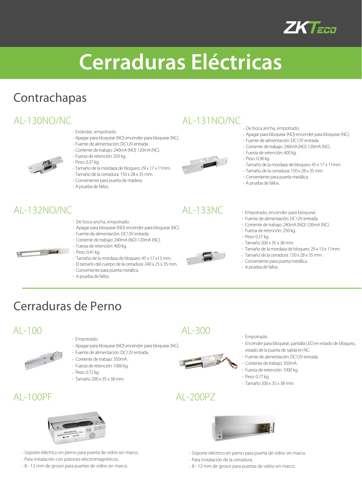 CARACTERÍSTICAS ZKTECO ZK-AL180PU
